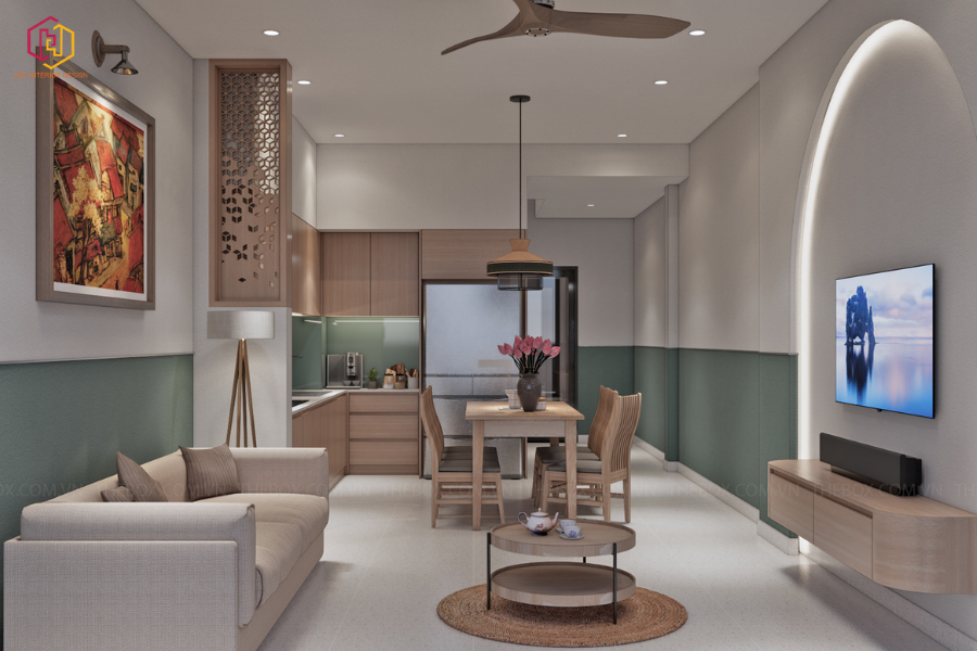 Hoàn thiện không gian sống: sơn tường, làm trần thạch cao, lát sàn, lắp đặt nội thất đồng bộ, tối ưu công năng.