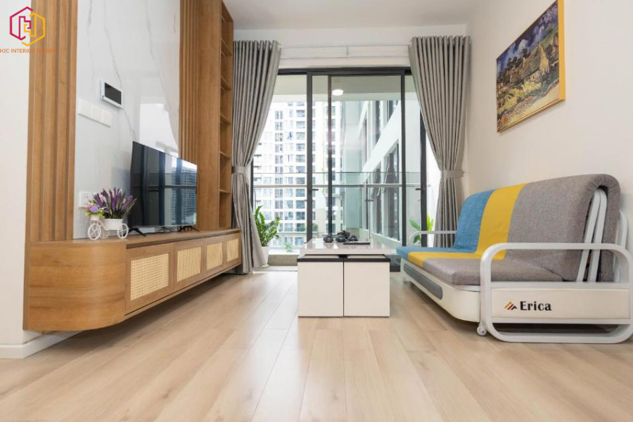 Căn hộ Vinhomes Grand Park (70m²): H2C thiết kế phong cách hiện đại – tối giản với nội thất gỗ công nghiệp cao cấp, chi phí trọn gói chỉ từ 120 triệu đồng.