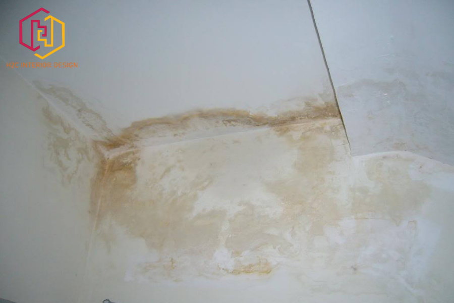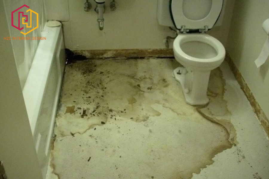 Sàn nhà vệ sinh luôn ẩm ướt, nước thấm xuống làm trần của tầng dưới bị rộp, phồng.