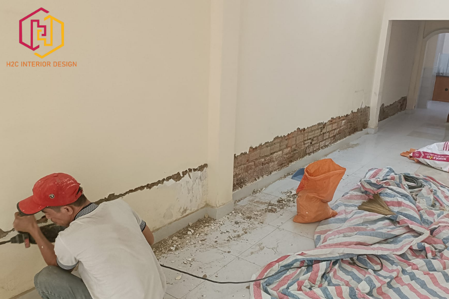 Việc vệ sinh và xử lý bề mặt kỹ lưỡng đóng vai trò then chốt, quyết định đến 80% hiệu quả của quá trình chống thấm. Đây là bước đầu tiên và quan trọng nhất mà đội ngũ H2C luôn thực hiện một cách tỉ mỉ.
