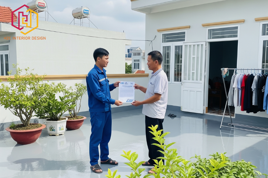 Bàn giao và hướng dẫn: Chúng tôi sẽ bàn giao công trình đã hoàn thiện, sạch sẽ và hướng dẫn quý khách cách bảo dưỡng để lớp chống thấm bền đẹp theo thời gian.