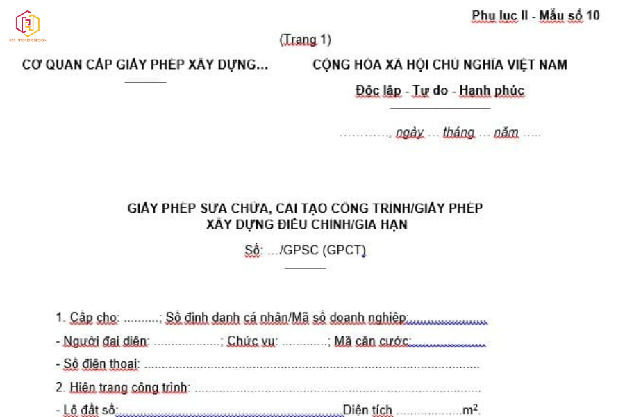 Đơn đề nghị cấp phép sửa chữa, cải tạo công trình.