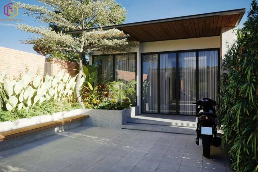 Nhà cấp 4 sân vườn: Nhiều cây xanh, giếng trời, tạo không gian thoáng đãng.