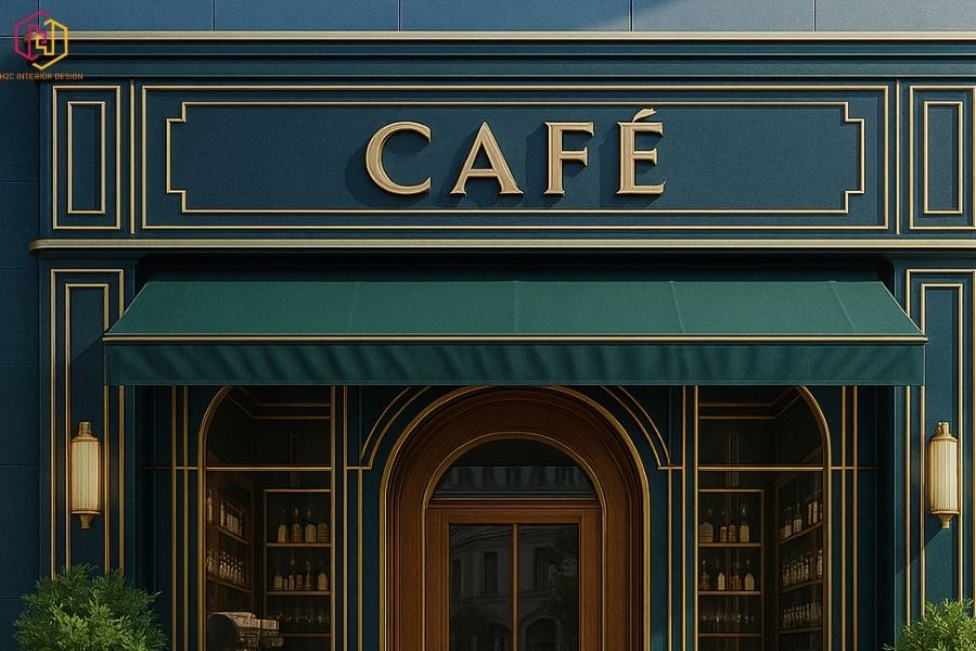 Mặt tiền quán cafe mang phong cách cổ điển, sang trọng, tạo không gian thư giãn, thu hút khách.