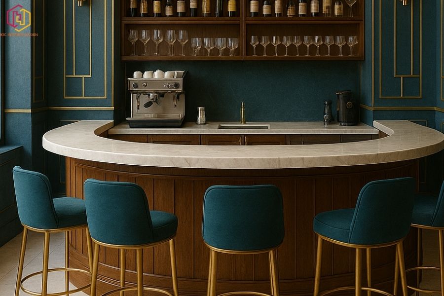 Quầy bar thiết kế theo phong cách Art Deco, tạo nên không gian sang trọng và cổ điển.
