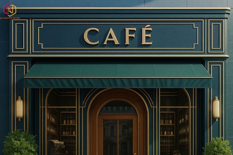 Mặt tiền quán cafe mang phong cách cổ điển, sang trọng, tạo không gian thư giãn, thu hút khách.