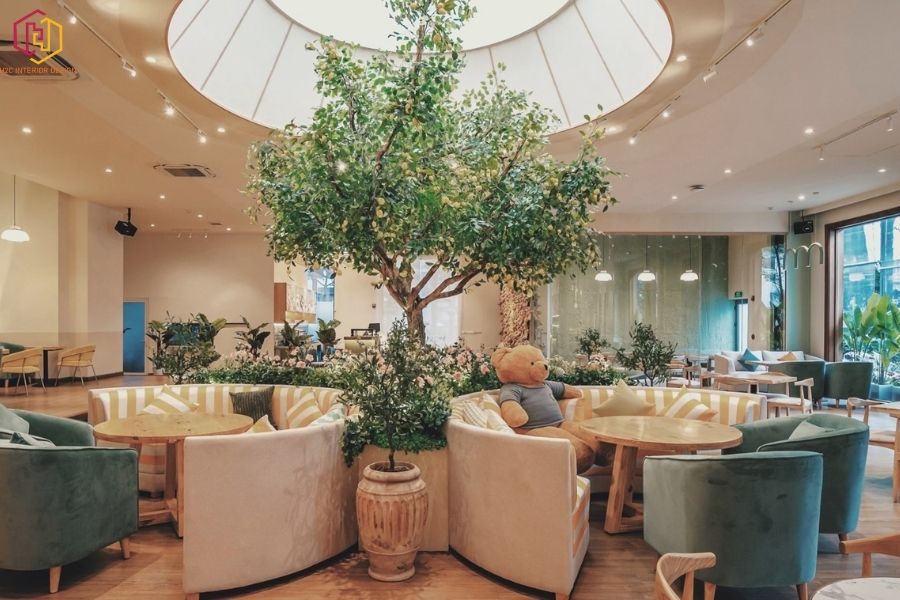 Đặc điểm nổi bật: Không gian rộng rãi, kết hợp cây xanh, hồ cá, tiểu cảnh, thác nước nhân tạo.