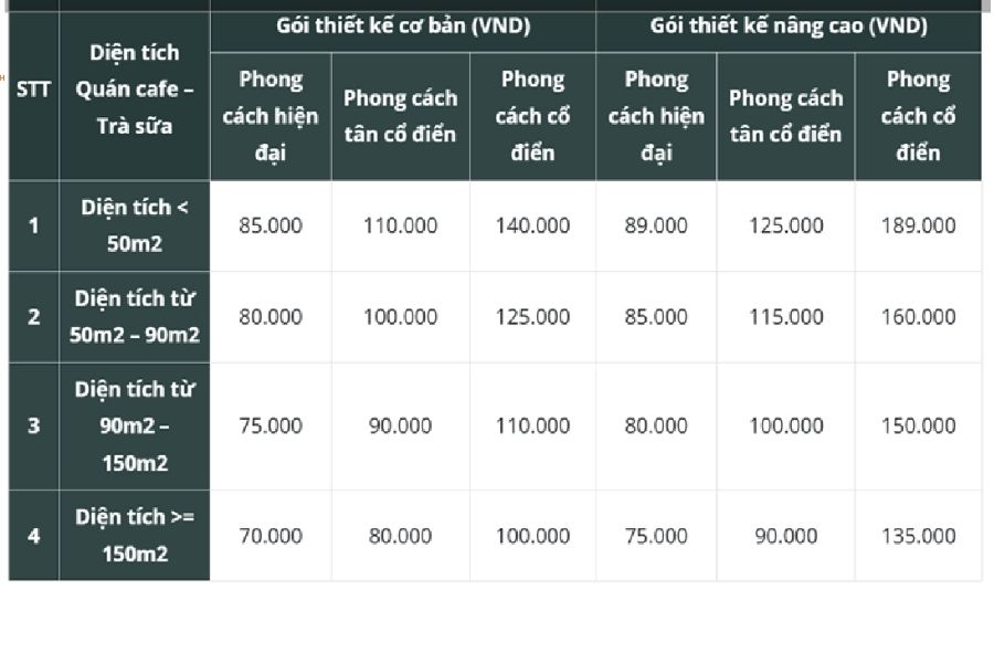 Giá thiết kế quán cafe tùy thuộc vào diện tích và phong cách quán.