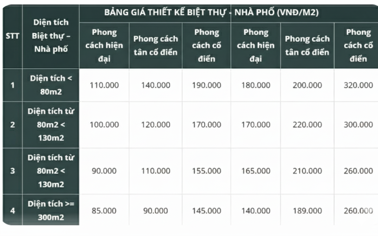 Tham khảo bảng giá thiết kế và thi công mới nhất tại H2C trong link SAU