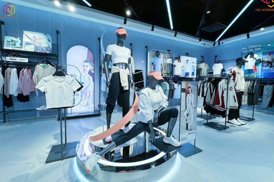 Không gian được thiết kế tập trung vào trải nghiệm khách hàng, nổi bật qua cách trưng bày manocanh ấn tượng