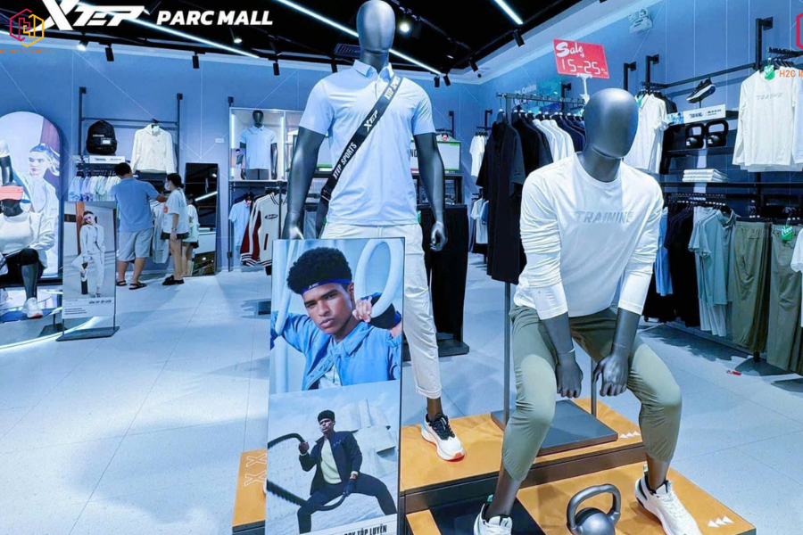 Cách bố trí manocanh và bảng quảng cáo minh họa hoạt động giúp khách hàng dễ hình dung sản phẩm khi tập luyện