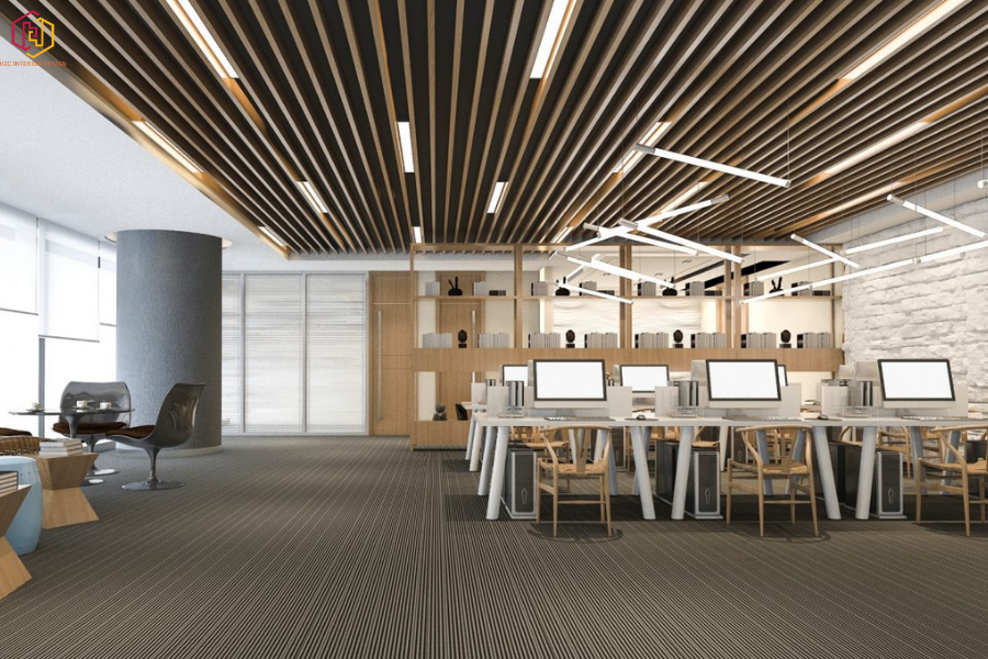 Thiết kế văn phòng chú trọng công năng và tính hiện đại, tạo môi trường làm việc hiệu quả, chuyên nghiệp mà không tốn kém. H2C thường ứng dụng bàn làm việc modul, vách ngăn gọn nhẹ, hệ thống tủ hồ sơ thông minh, kết hợp ánh sáng tự nhiên để giảm chi phí vận hành.