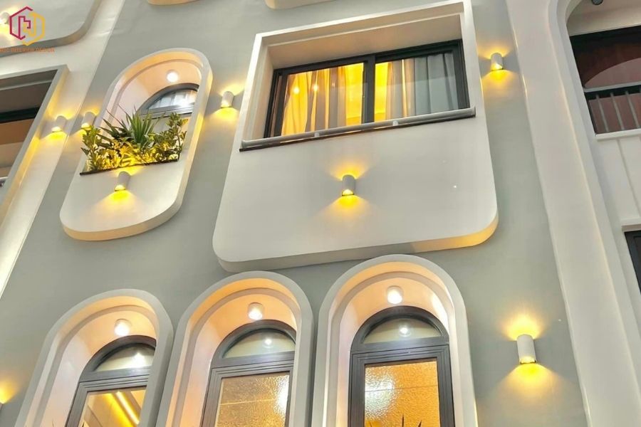 Mặt tiền thường dùng cột, phào chỉ nhẹ nhàng.