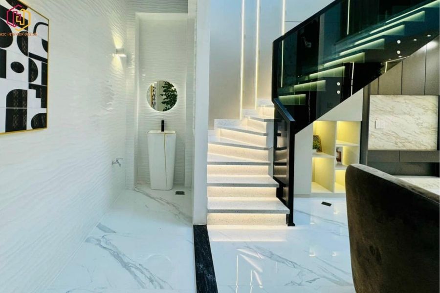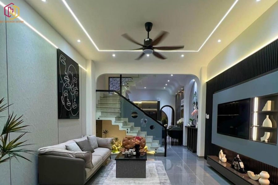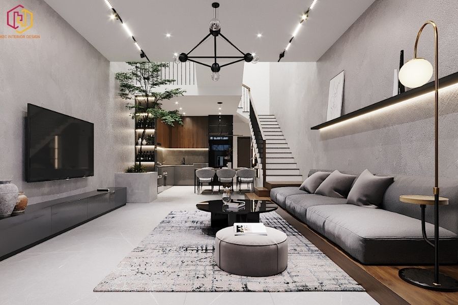 Không gian sống hiện đại, sang trọng và tối giản, tạo cảm giác rộng rãi và tinh tế cho căn nhà.