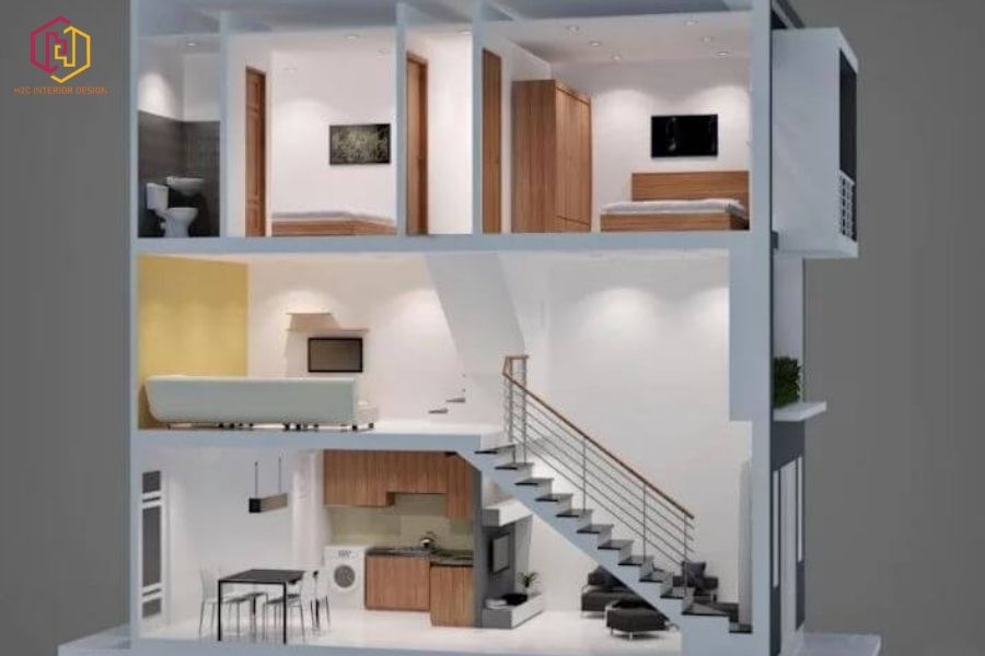 Thay vì phát sinh thêm chi phí khi thuê nhiều bên, H2C cung cấp trọn gói từ thiết kế, thi công phần thô đến hoàn thiện. Nhờ có xưởng nội thất riêng, H2C tối ưu giá thành mà vẫn đảm bảo chất lượng.