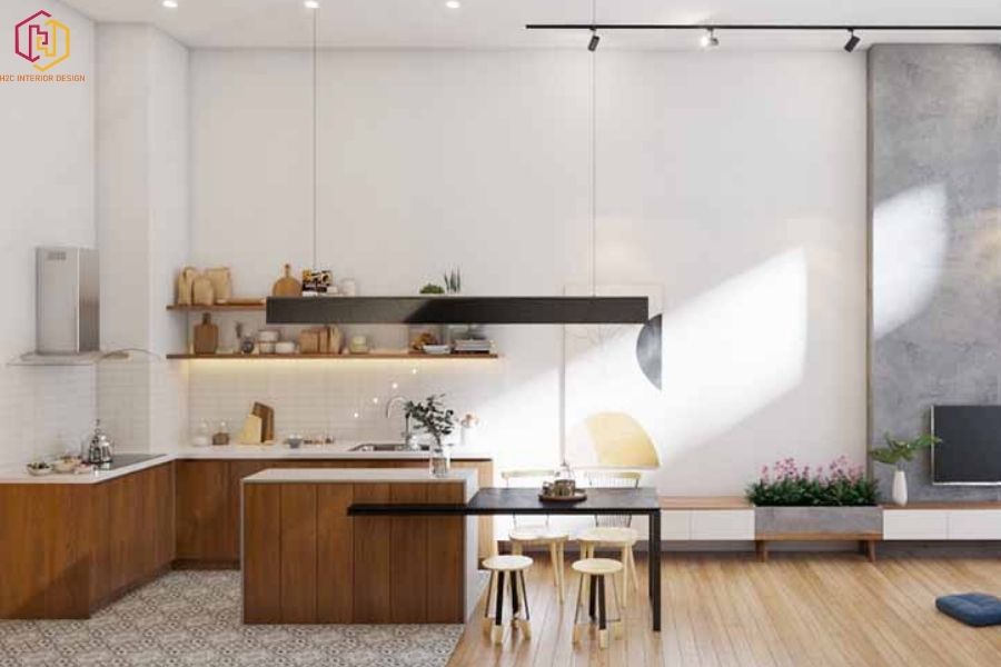 Không gian mở, liên kết phòng khách – bếp – sân vườn.