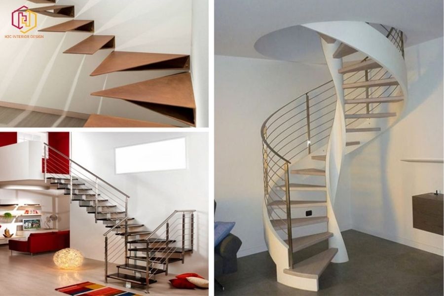 Chữ L, chữ U, xoắn, cầu thang xương cá tiết kiệm diện tích.