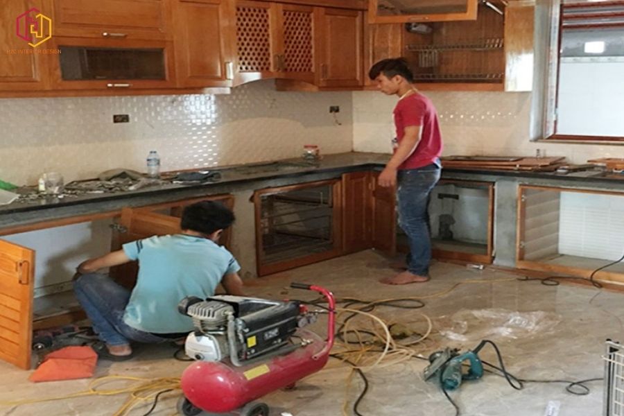 Thợ chuyên bếp, đảm bảo đường nét sắc gọn, chuẩn kích thước, không làm ẩu.