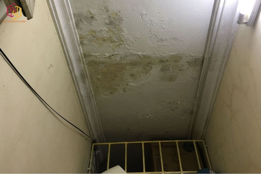 Tường bị thấm, mốc, bong tróc.